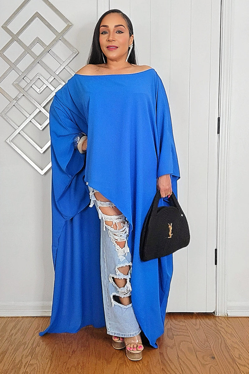030725 The Oversized Asymmetrical Sophia Top- Royal Blue